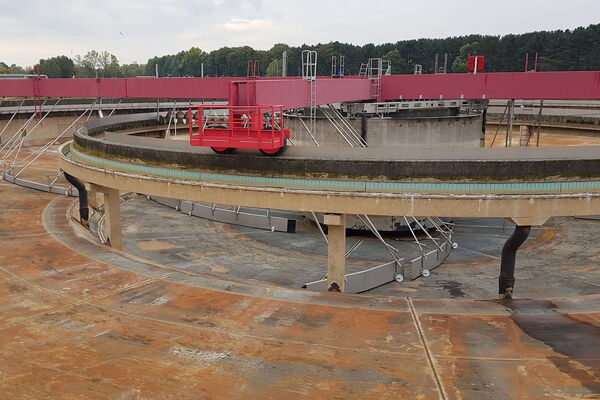 - Umbau von 8 Nachklärbecken mit Durchmessern von 65 und 70 Metern und deren Verteilerbauwerken