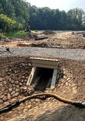 Im Sinne der Hochwasservorsorge haben wir ein Retentionsvolumen von circa 22 380 Kubikmetern geschaffen. Dafür mussten wir 30 000 Kubikmeter Bodenmasse bewegen, drei Rahmendurchlässe sowie einen Rohrdurchlass setzen und rund 600 Meter Wartungswege anlegen.