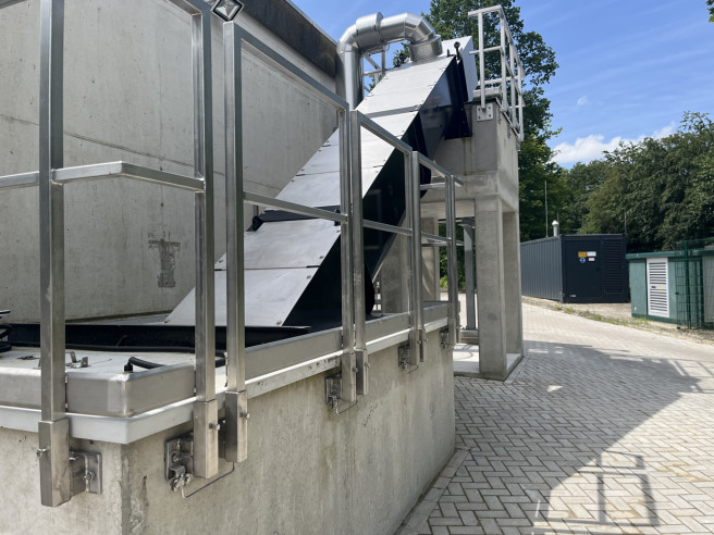 Auf der Kläranlage Ostbevern kam es beim Zulaufpumpwerk durch im Abwasser befindliche Feuchttücher zu häufigen Betriebsstörungen an den Tauchmotorpumpen. Zur Optimierung der Betriebssicherheit wurden die zwei Tauchmotorpumpen durch eine kaskadierte Rohr- und Kompaktabwasserschnecke ersetzt.